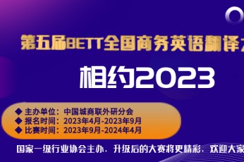 为了促进翻译教育事业的发展和翻译水平的提高,调动广大翻译爱好者,尤其是高等院校的在校大学生提高翻译及应用技能的积极性,为国家未来的翻译事业和经济建设培养和输送具有较好翻译基础的青年人才,促进国际文化交流,使世界了解中国,使中国走向世界。在中国商业联合会的大力支持下,全国商务英语翻译项目考试办公室和全国商务英语翻译专业委员会决定举办第五届ETTBL全国商务英语翻译大赛(以下简称“大赛”)。